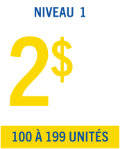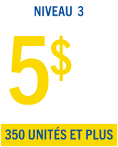 *Le paiement maximal de 8,00 $ suppose l’atteinte du niveau 3 du programme le temps, c’est de l’argent (quantité de la commande initiale de 350 pneus admissibles ou plus) et la qualification à la prime de croissance de 3 $.